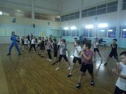 Ребята из детских объединений с удовольствием выполняли интересные упражнения разминки, а также попробовали выполнить некоторые приемы единоборств.