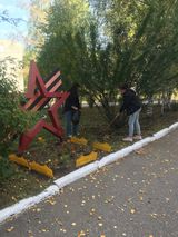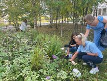 Участники субботника собирали опавшую листву, ухаживали за клумбами, поливали растения, срезали сухие соцветия.